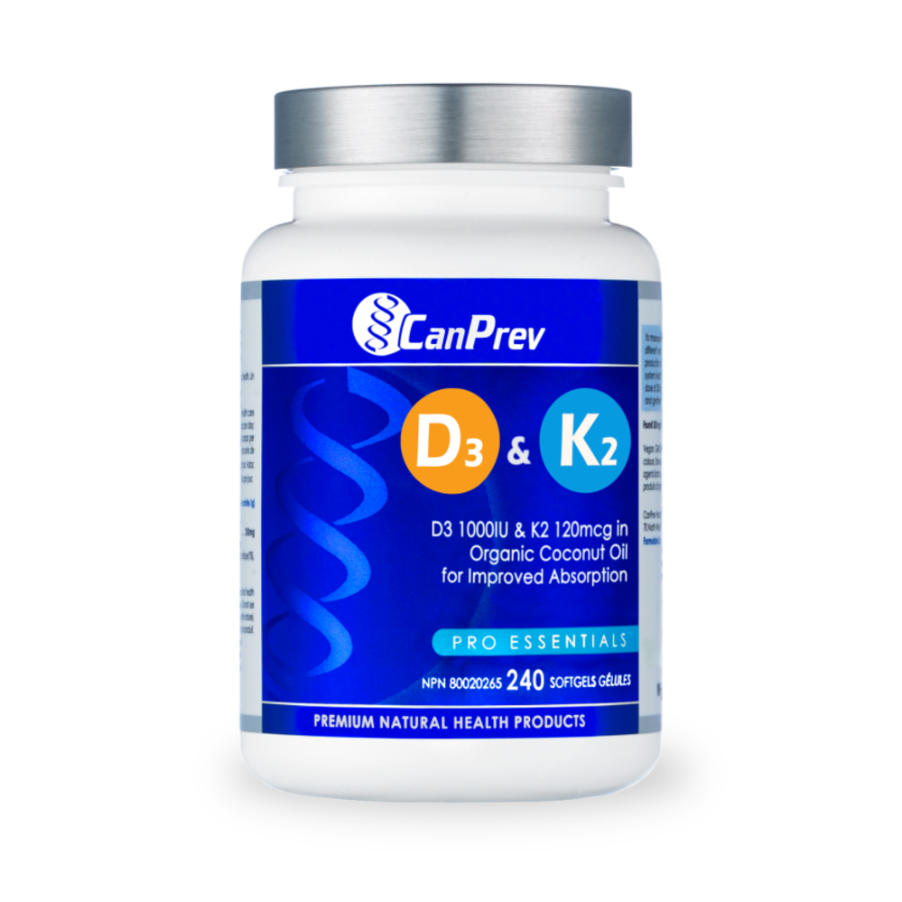 CanPrev’s D3 & K2 has been reformulated with K2Vital, a unique form of MK-7 that is soy-free, plant sourced, and 100% trans form, yielding a pure, bio-active form of vitamin K2 MK-7. The D3 & K2 softgels are suspended in a medium chain triglyceride base made from organic coconut oil. Coconut oil is a stable fatty acid that enhances the absorption of fat-soluble nutrients, such as vitamins D and K. Get the benefits of a sunshine vacation every day of the year with CanPrev’s D3 & K2 softgels.