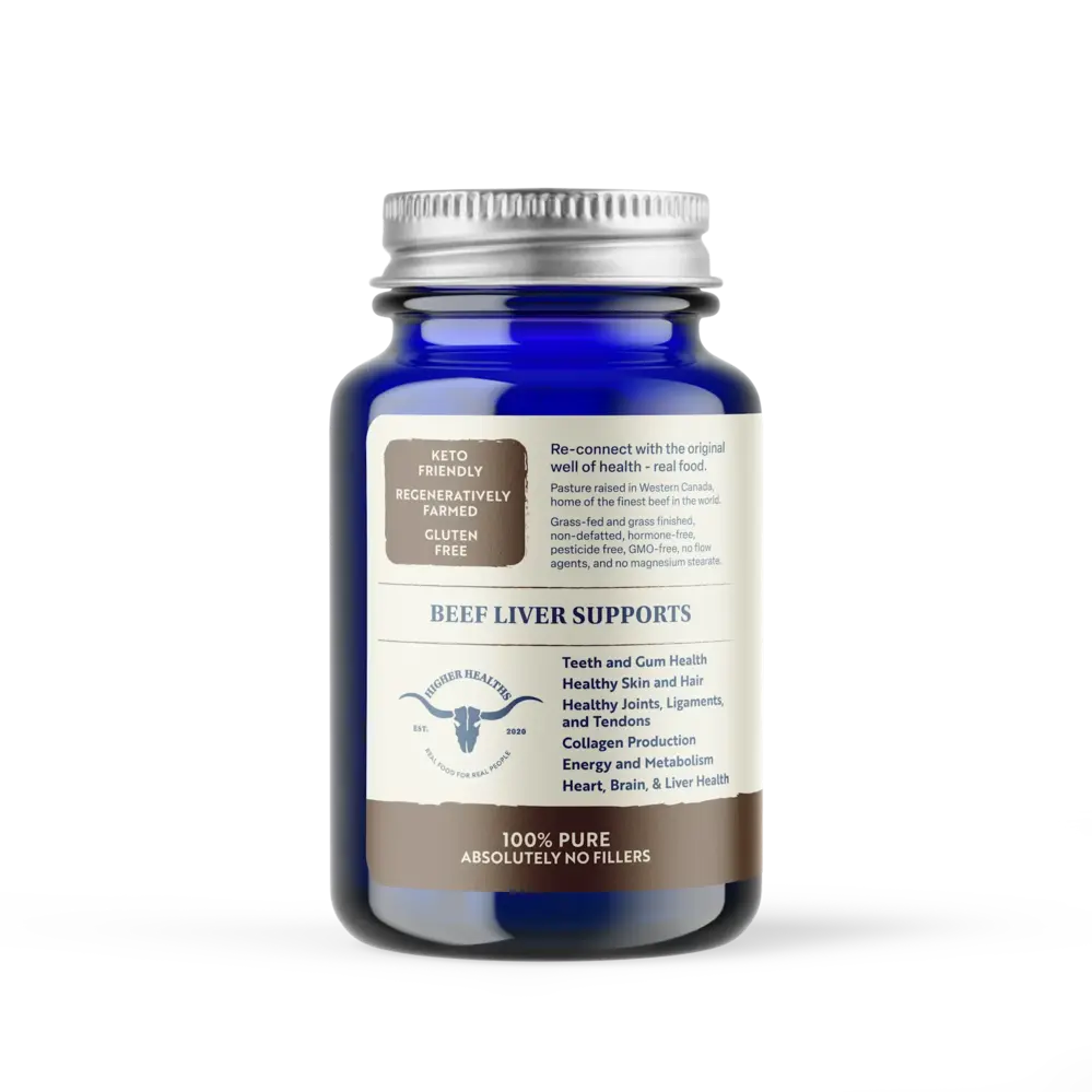 For centuries, liver has been celebrated for its incredible nutritional profile and therapeutic properties. It is a true powerhouse of essential vitamins, minerals, proteins, and healthy fats. At Higher Healths, our beef liver capsules are sourced exclusively from regeneratively farmed, grass-fed, and finished cattle from Canadian farms - home to the best beef on earth.