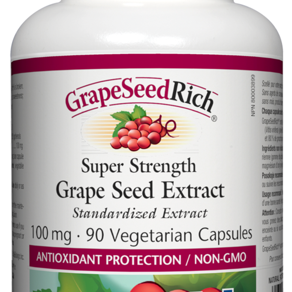 Natural Factors GrapeSeedRich Super Strength Grape Seed Extract comes in convenient capsule form and is an excellent antioxidant for the maintenance of good health. This super strength standardized extract guarantees a high percentage of polyphenols and proanthocyanins, which are the main constituents responsible for grape seeds' important health benefits.
