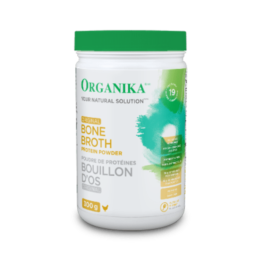 Traditionally, Bone Broth is prepared by prolonged boiling of the bones into savoury liquid, which breaks down the collagen releasing the full nutrients. Organika® Bone Broth Protein Powder is simmered 24-48 hours to extract the maximum amount of nutrients. It dissolves evenly and quickly, is high in protein and has no carbohydrates or sugar.