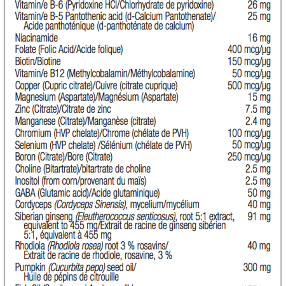 Stress can be a destructive force to your health, creating extra strain on your nervous system, cardiovascular system, adrenal glands and more. With the right multivitamin formula, you can help your body deal with stress, recover lost energy and regain your calmness and mental clarity. To help you win the battle with stress, Easymulti® Stress for Men combines your daily vitamin and mineral needs with gaba, cordyceps, rhodiola rosea and siberian ginseng.